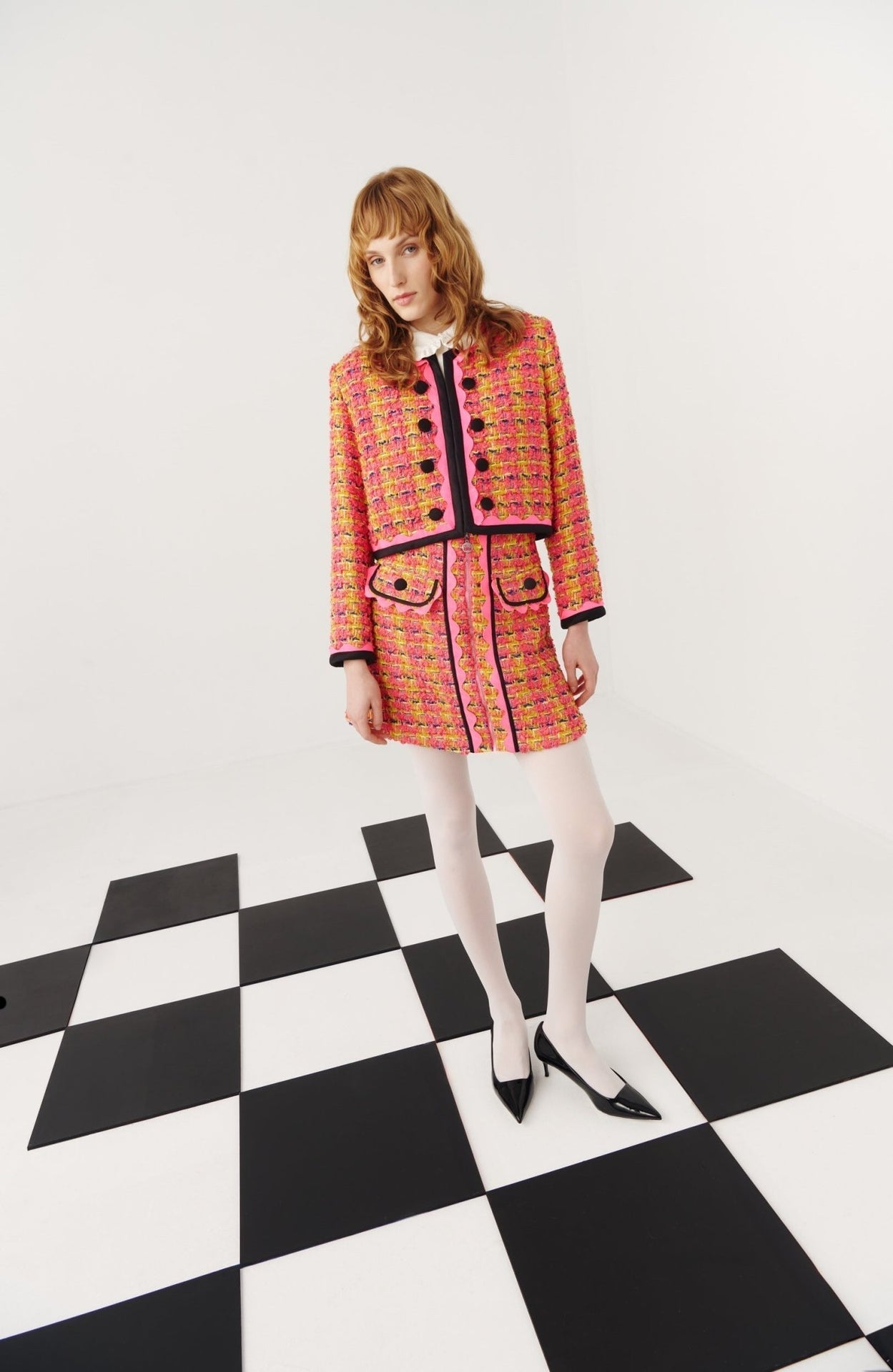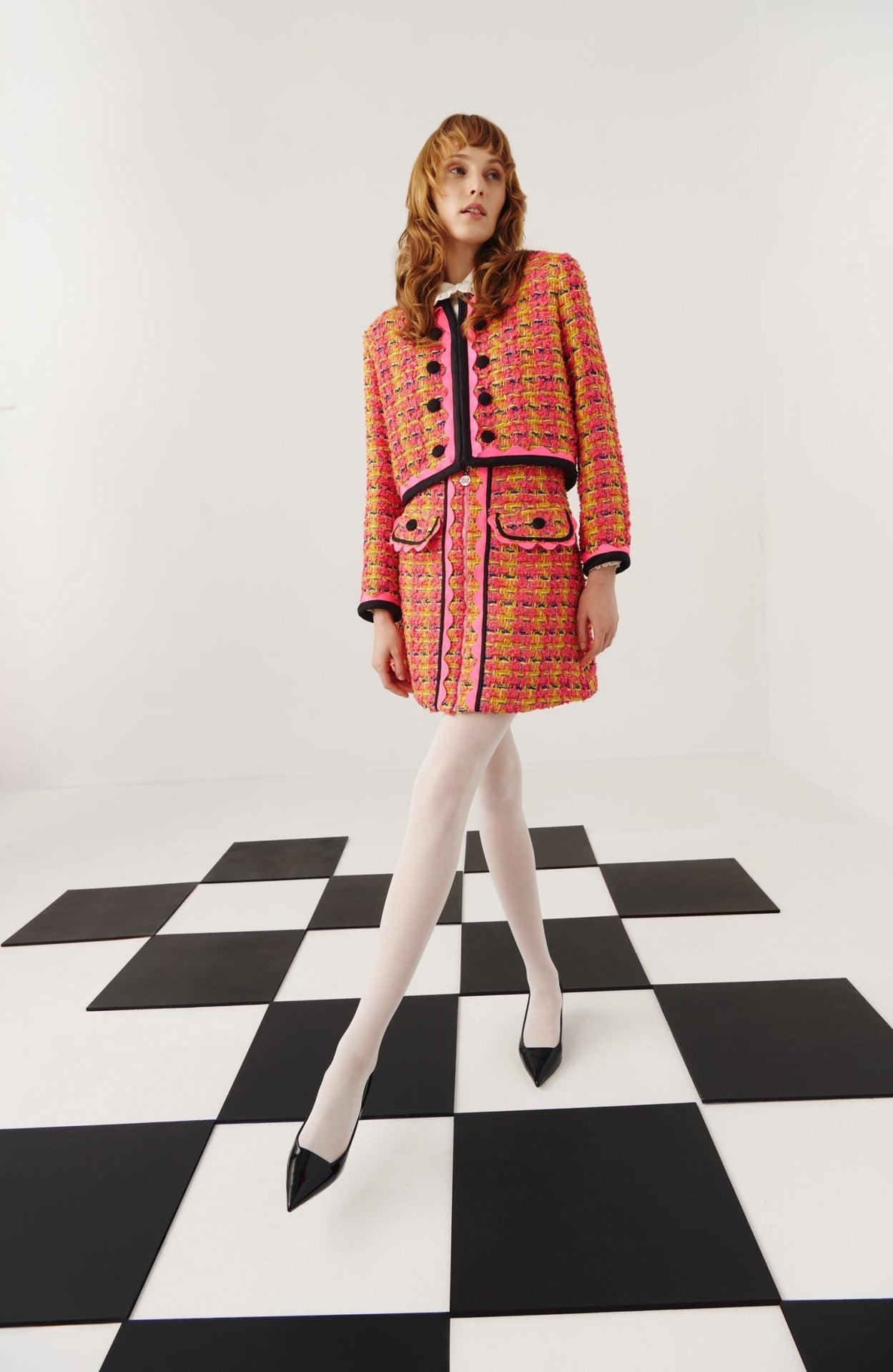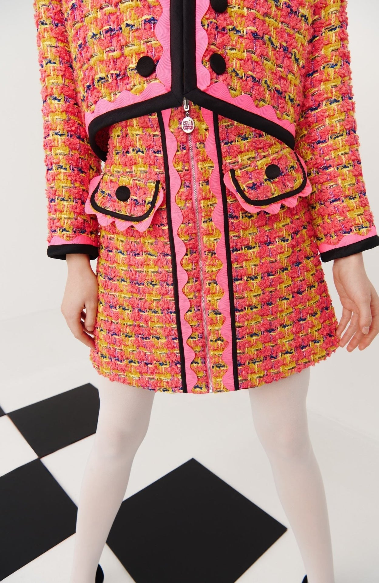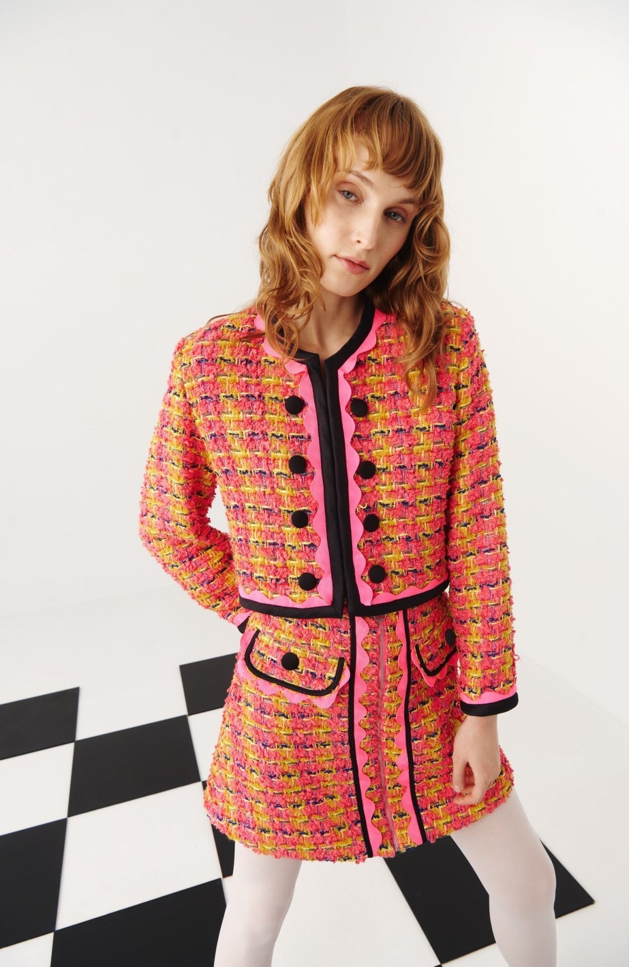 High waisted, A-line tweed skirt in a stunning pink and yellow pattern, with a neon pink detail along the trim. The epitome of elegance and style, perfect for a morning business meeting and a dinner party! With faux pockets and a front zip!Ê