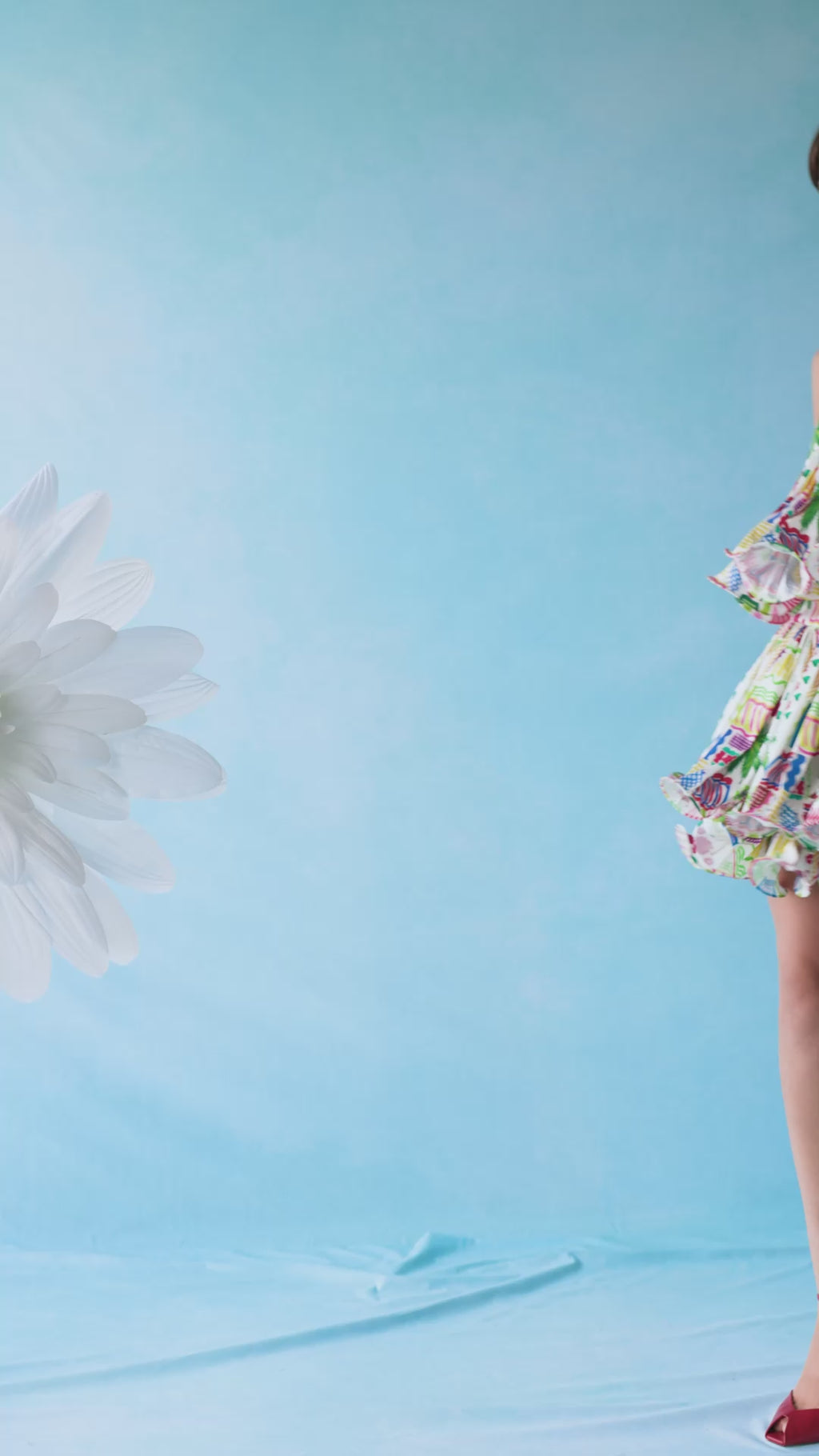 Featuring the exclusive illustrated print developed from Celia’s watercolor artwork inspired by her travels to Thailand, it brings color and artistic identity to every look. Finished with an invisible side zip closure for a clean fit.