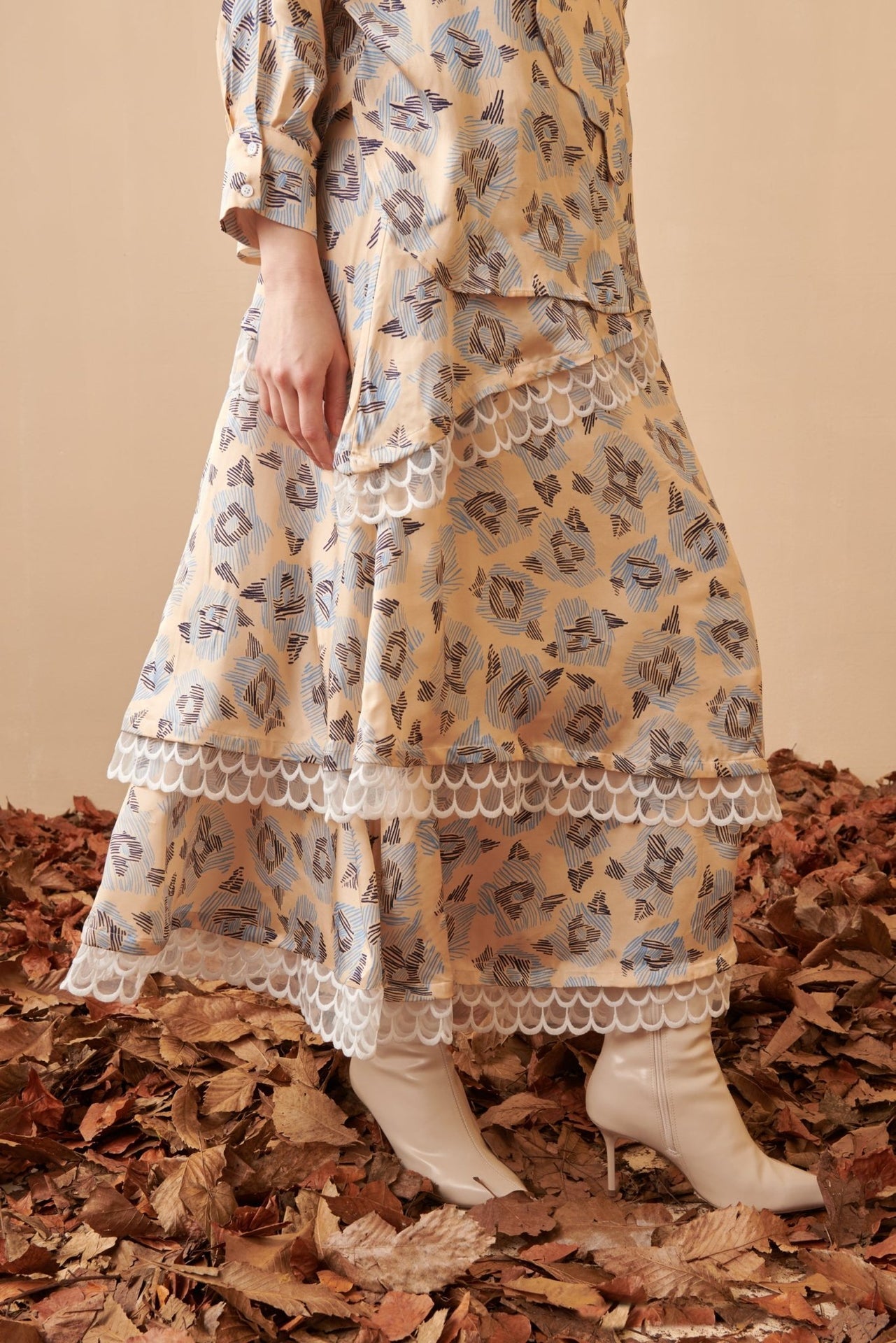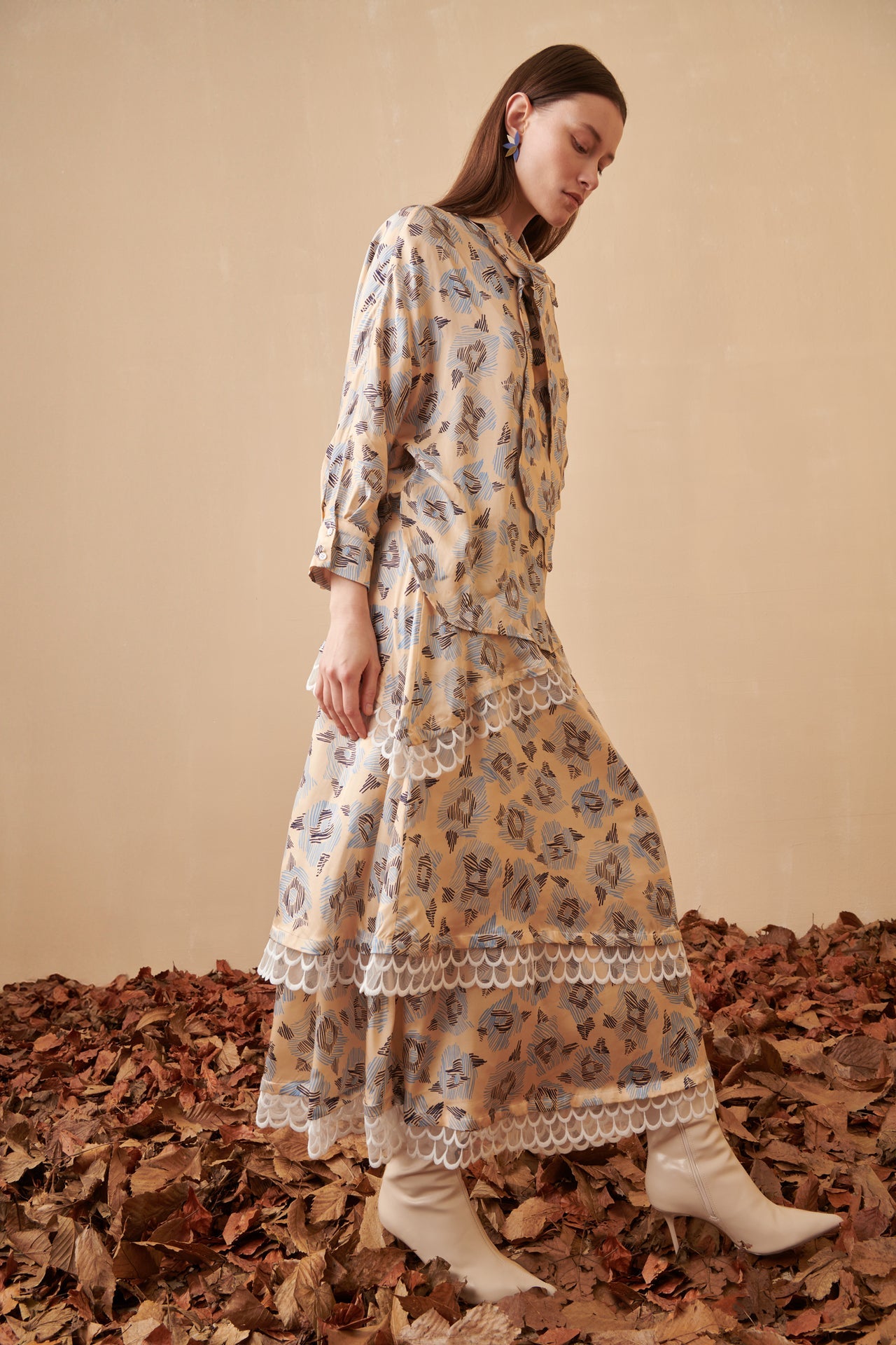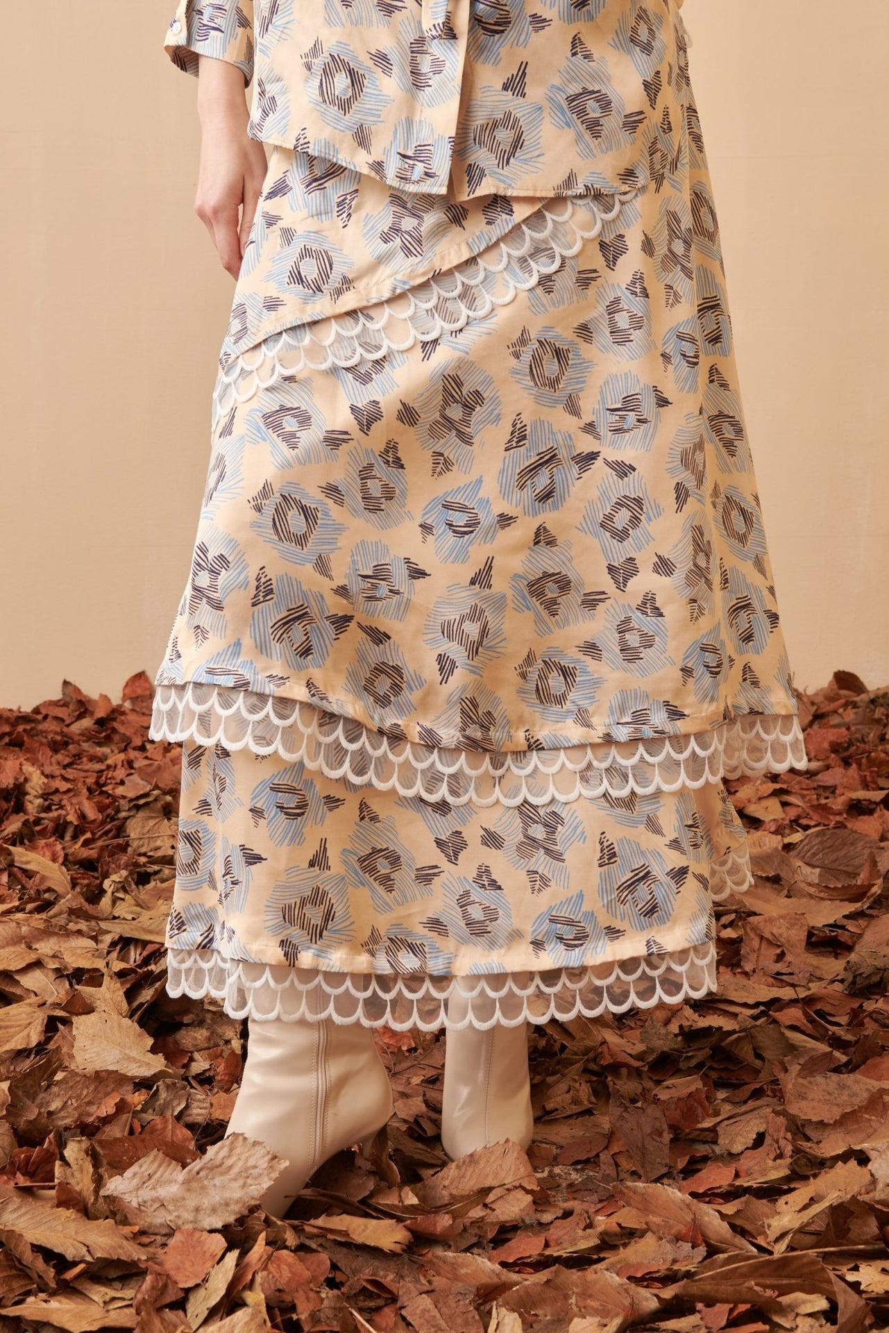 The Vibrancy Skirt is a flowing maxi skirt crafted in a soft floral print fabric. Its tiered structure adds movement and lightness, making it an elegant piece for both day and evening wear. A versatile design that can be styled with its matching top or a simple blouse for a refined look.